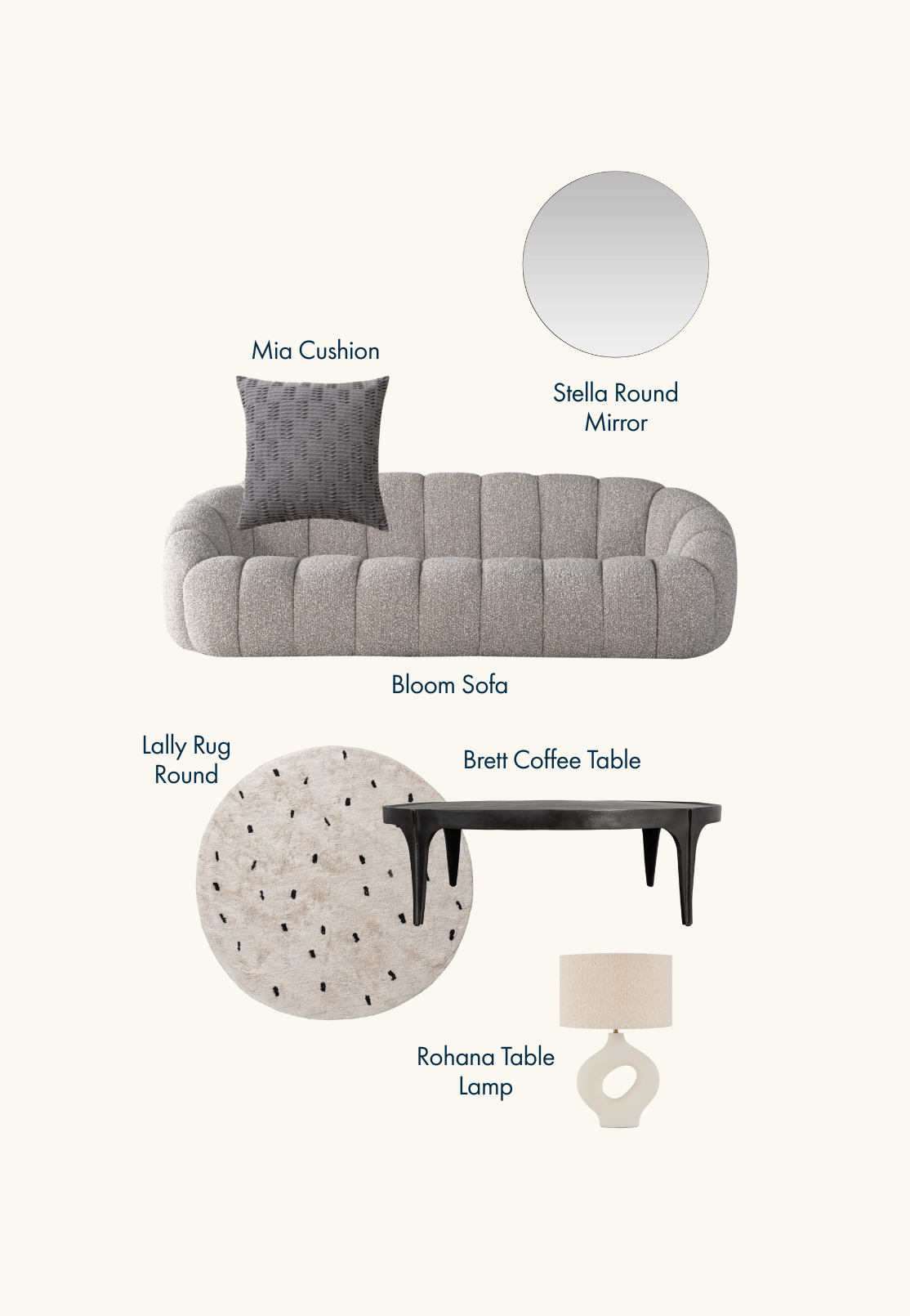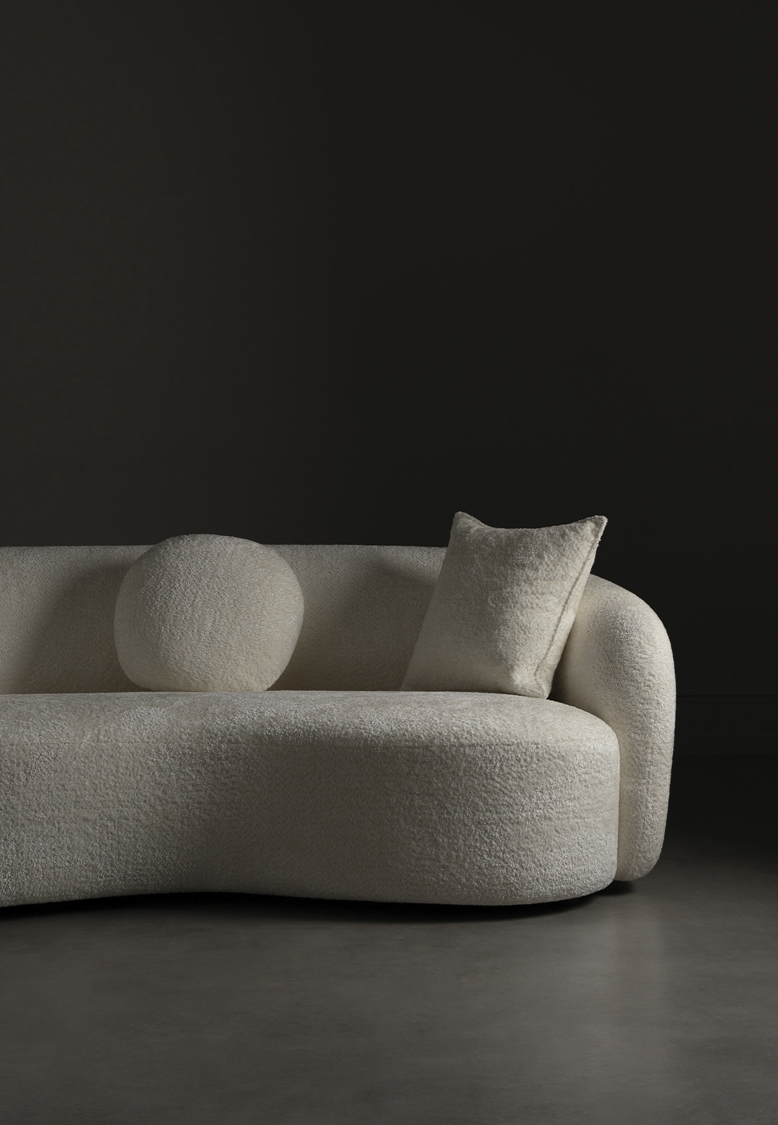 Sofas with softly contoured backs, cocoon-like armchairs, rounded coffee tables and sculptural side pieces create a sense of flow within the space. These forms don’t dominate the room — they shape it subtly, encouraging movement and relaxation.