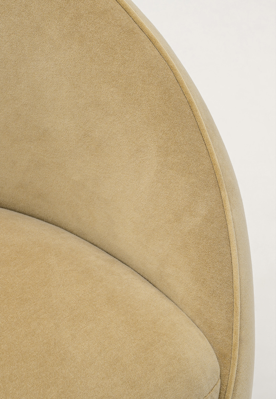 The Stella Lounge Sofa argues differently: lower, longer, more emphatic in its insistence on horizontal repose, it simply extends across the room as though gravity itself had a preference. That both are upholstered in lulu camel – a fabric the colour of dunes at the last hour before sunset – is not incidental. The shared tone acts as a through-line, a quiet thread that holds the entire composition together even as the forms around it vary; the room's warmth made consistent, its temperature held steady. Yet the effect of either is entirely yielding.