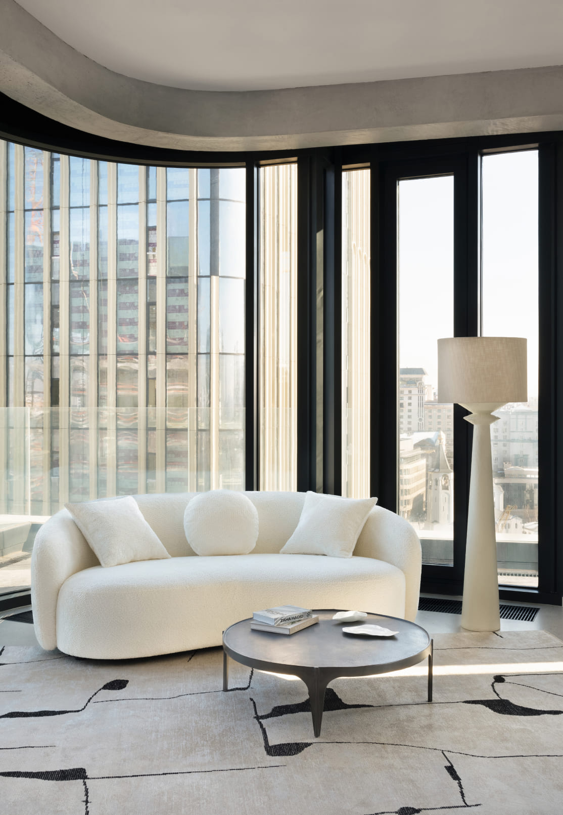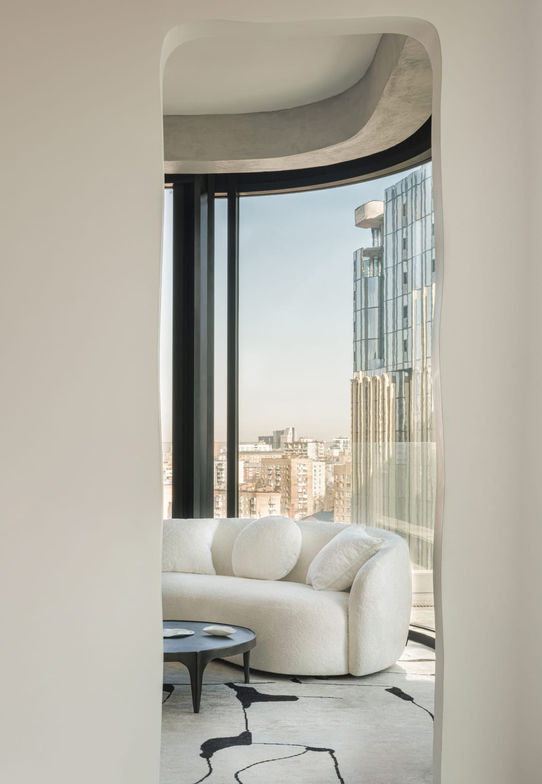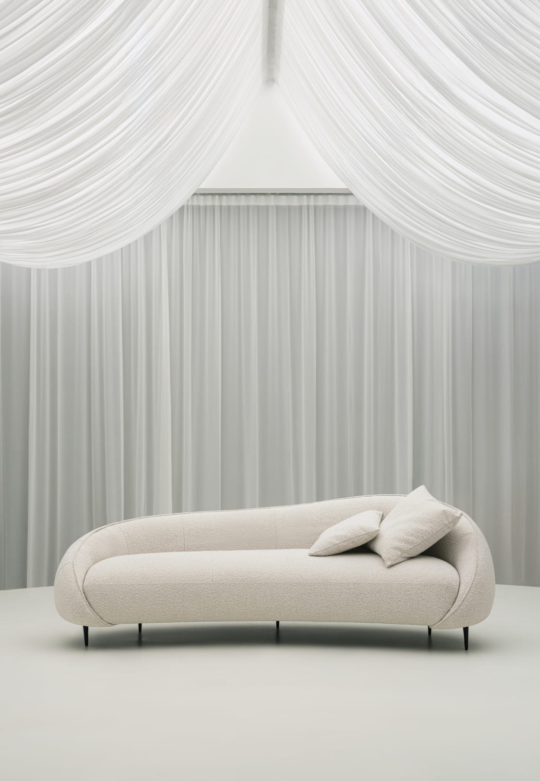 Sofas shaped by gentle curves echo this feeling particularly well. Studies in design psychology show that rounded forms are instinctively perceived as more welcoming and reassuring. They soften the visual environment, reduce tension and create a sense of visual comfort, encouraging both the body and the mind to fully unwind.