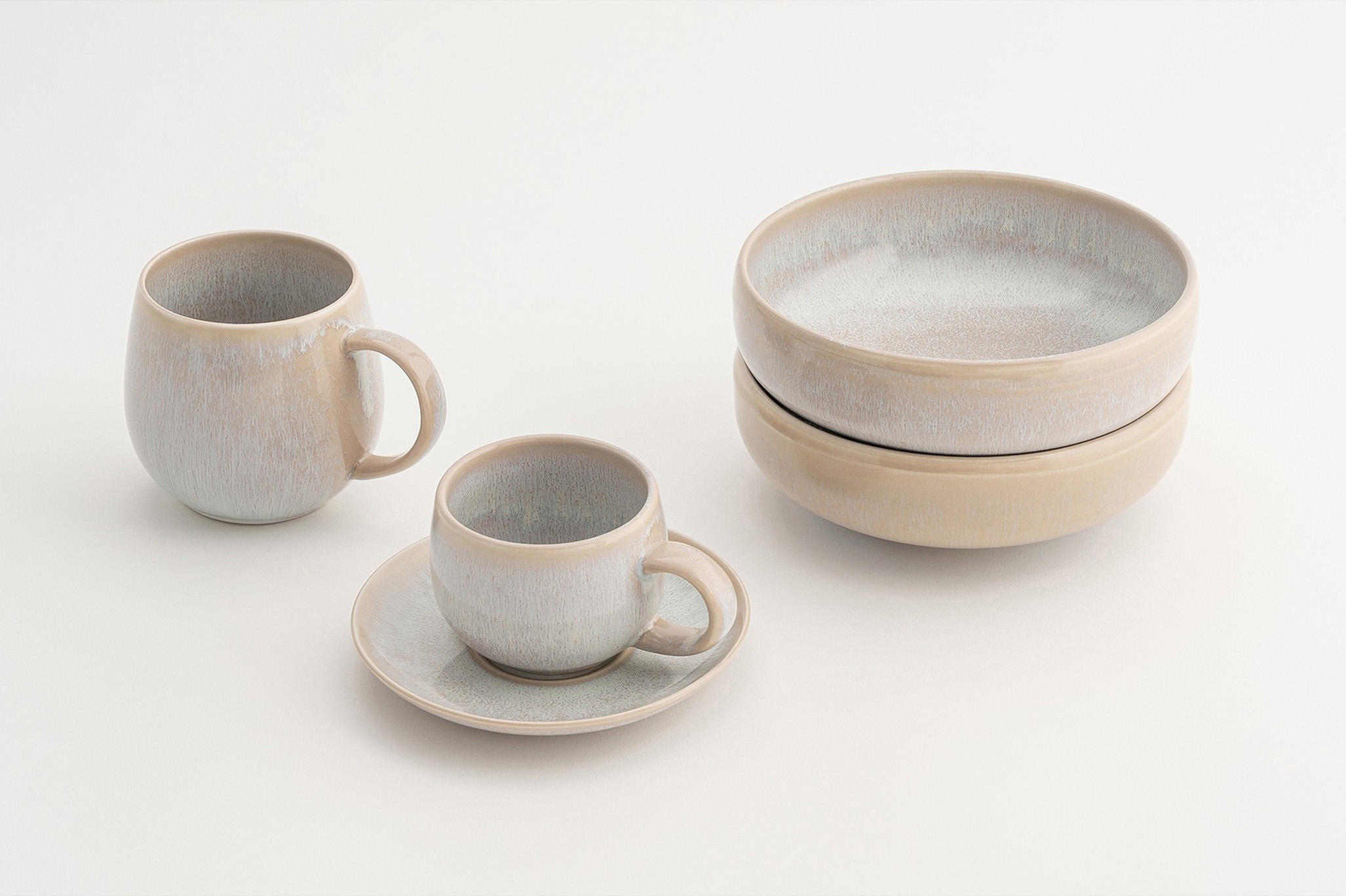 The palette across the list is remarkably consistent: sand, ivory, warm grey, charcoal. Almost nothing in primary colour, almost nothing loud. But neutral here does not mean plain. What keeps these pieces interesting is texture: the bouclé on the Jayson Armchair, the dimensional oak façade on the Textures Bedside Table, the raw stoneware of a Dune Mug. The colour recedes, and the surface takes over.