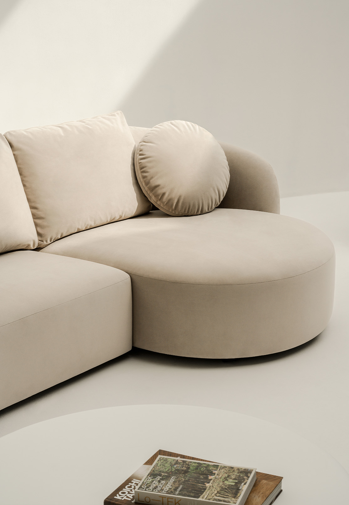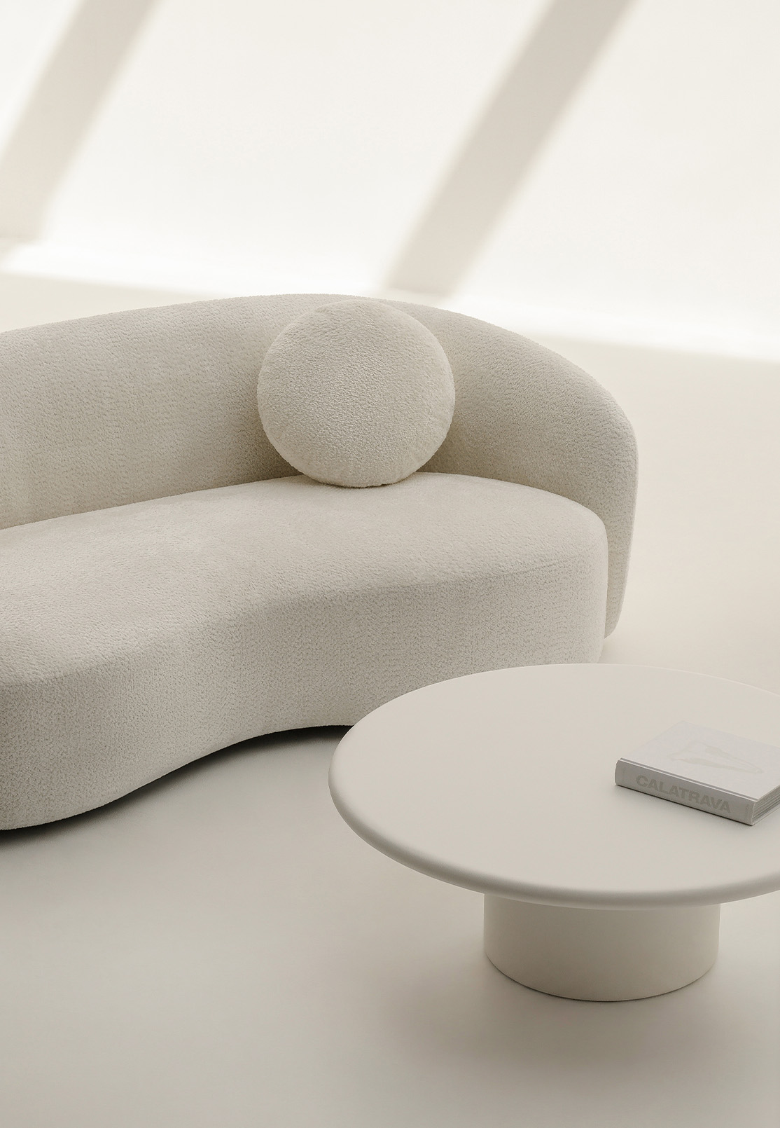 Rounded forms dominate the list. In a city where the architecture tends towards straight lines and sharp angles, curved furniture softens the interior and makes it feel more lived-in. A round mirror on a rectangular wall, a curved sofa against a flat partition – the contrast is what makes the room feel composed rather than rigid.
