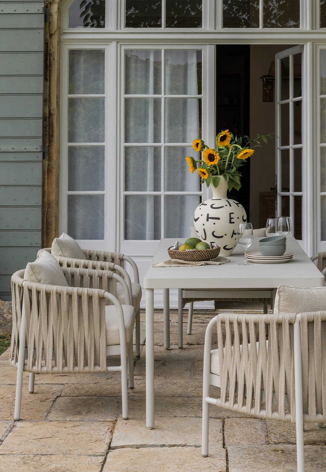 In a city where the terrace is usable eight or nine months a year, outdoor furniture is not seasonal – it is permanent. The bestseller list reflects this: Tulum Sofa and Armchair, Taormina Dining Armchair, Daffodil Bistro Table, Commet Chair with Cushion. These sit alongside indoor pieces as equals, not as afterthoughts. The terrace in Dubai is a living room, a dining room, and often the best room in the house.