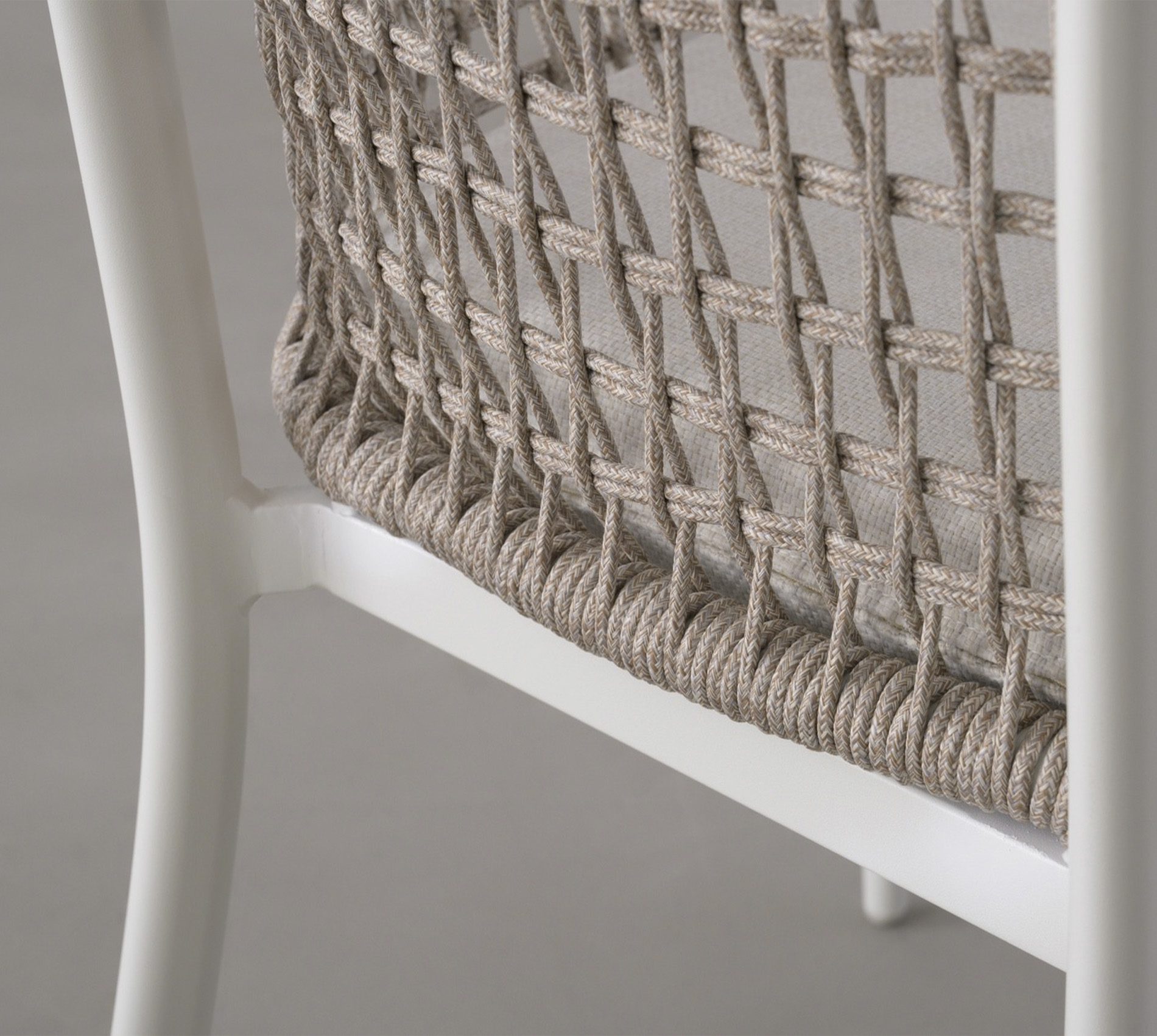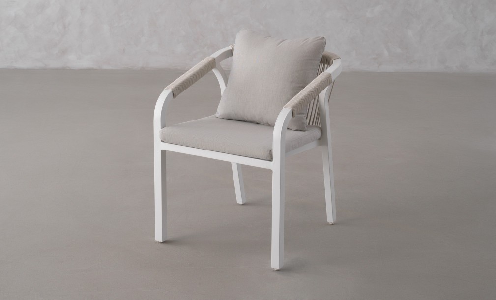 Ancona pairs sleek lines with soft upholstery, striking a balance between comfort and modern minimalism. Easy to move and easy to love, it’s perfect for a flexible outdoor space, whether it’s a dining zone in the garden or a quiet breakfast nook.