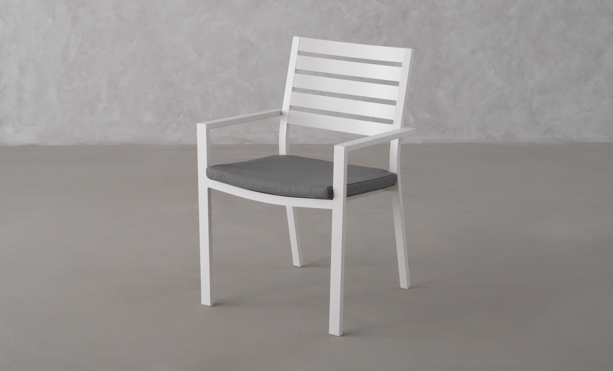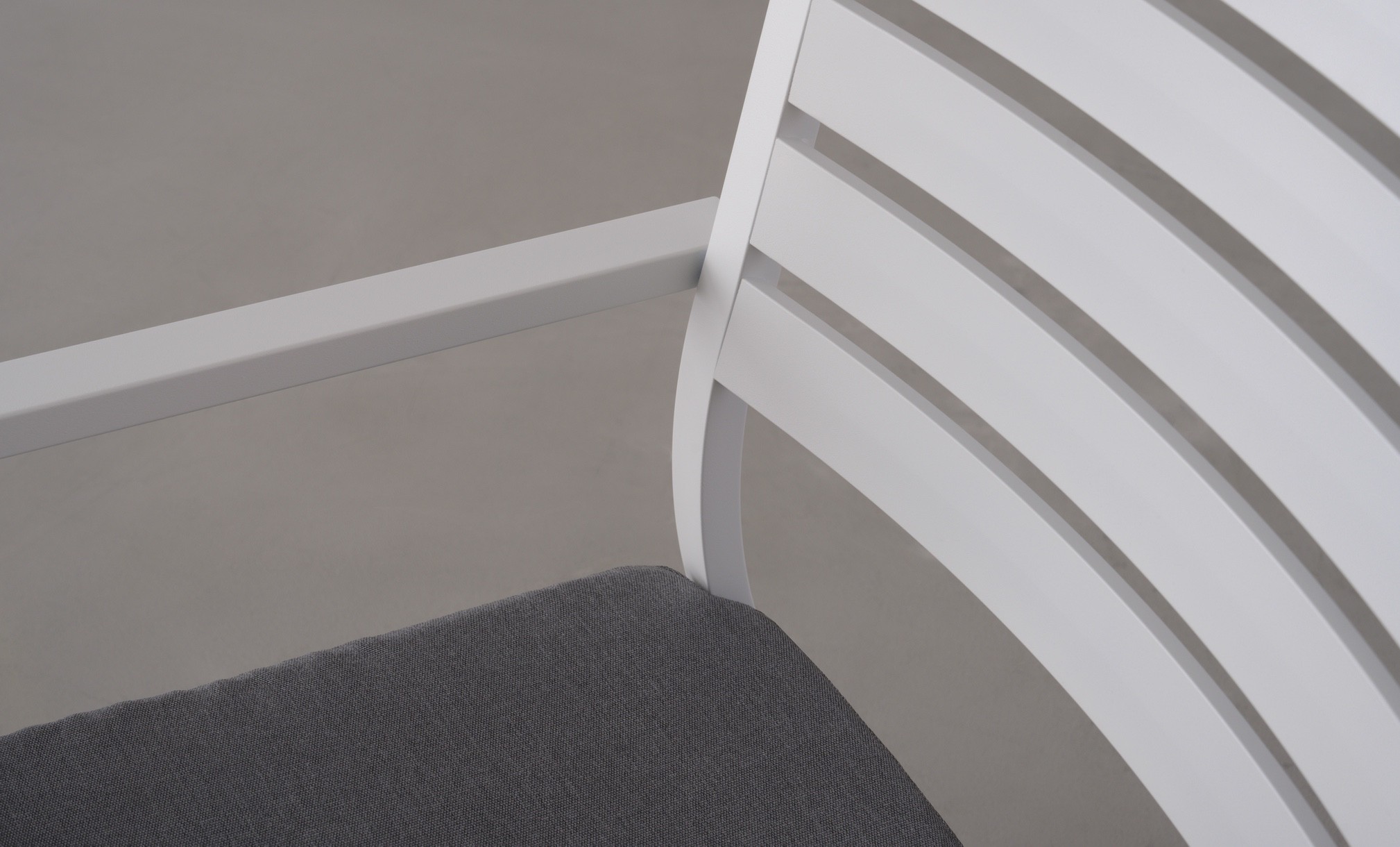 The Commet chair is all about clarity and function, with its graphic frame and practical cushion. Light in weight but steady in presence, it works beautifully when arranged in multiples around a barbecue table, and feels equally at home as a single accent piece on a balcony.