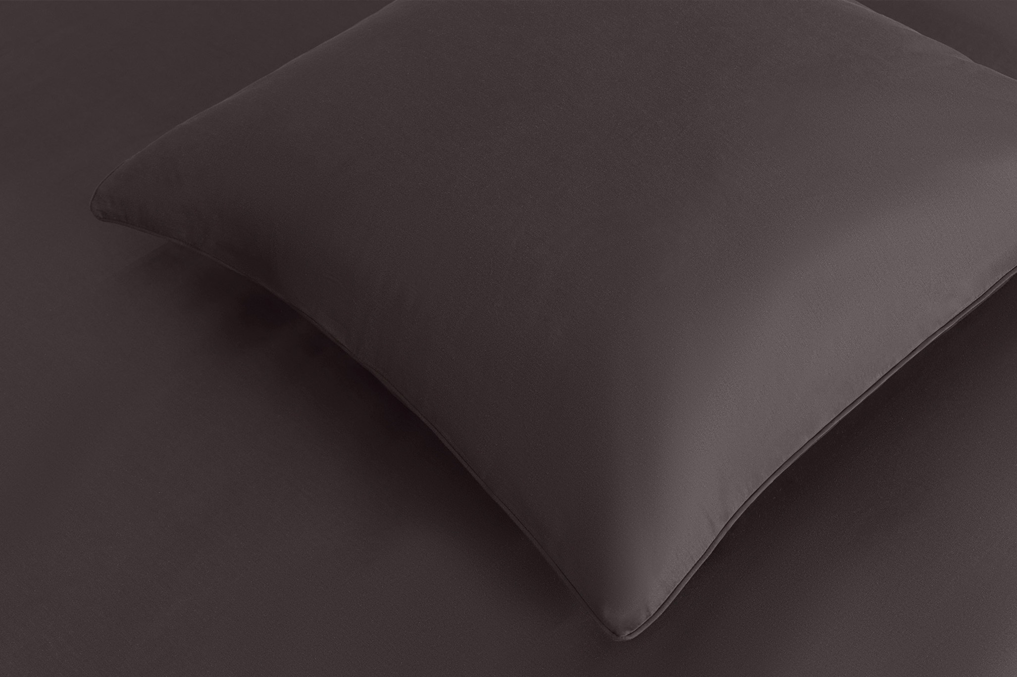 The most committed of the four colours. In low light it reads almost black; in morning light it pulls warmer, closer to dark plum. In Reverie, the white border is sharp against it – almost architectural, the kind of contrast that makes a bed look like a considered decision. In Sense, the same colour becomes quieter, more personal.