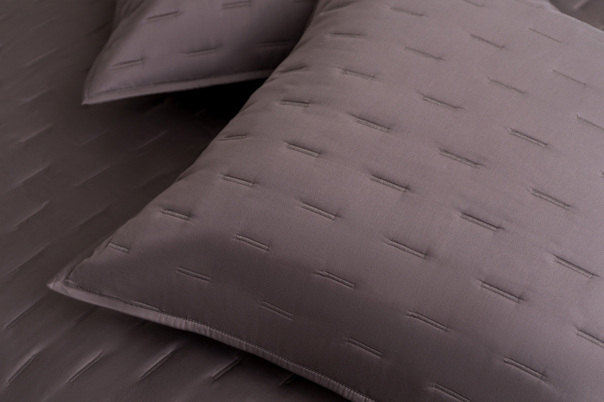 The quilted bedspreads and pillowcases that complete the collection. Made to work across all four colours and both designs, Cloud adds a final layer of texture to the bed without competing with what is underneath it.