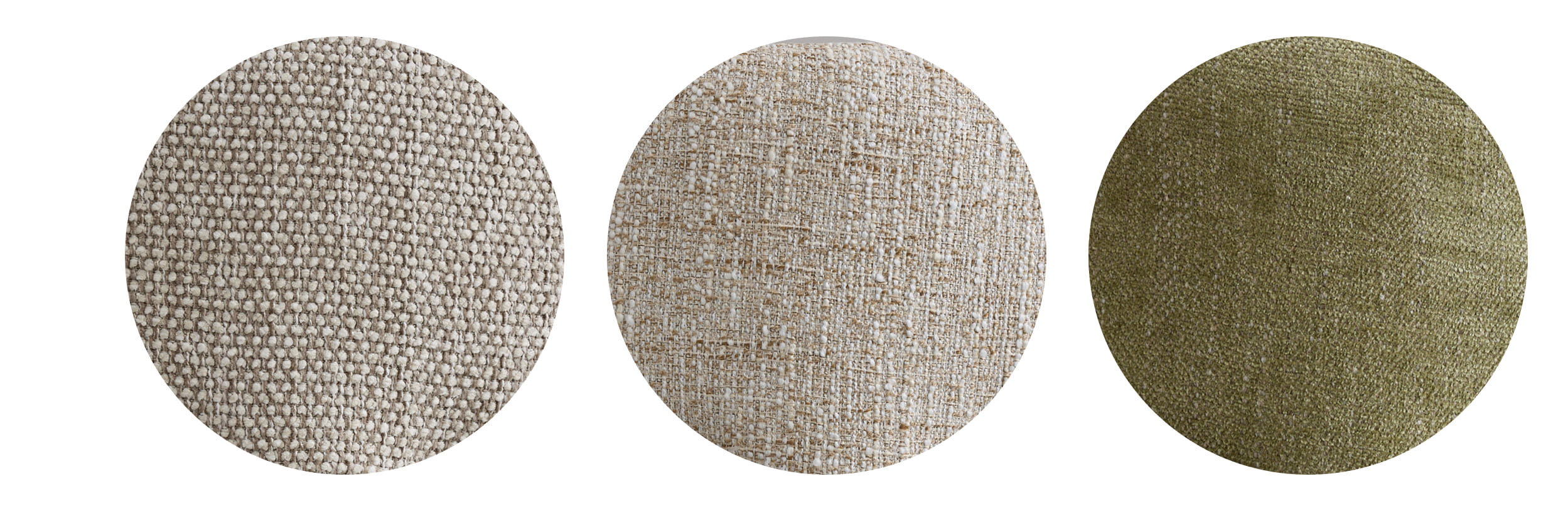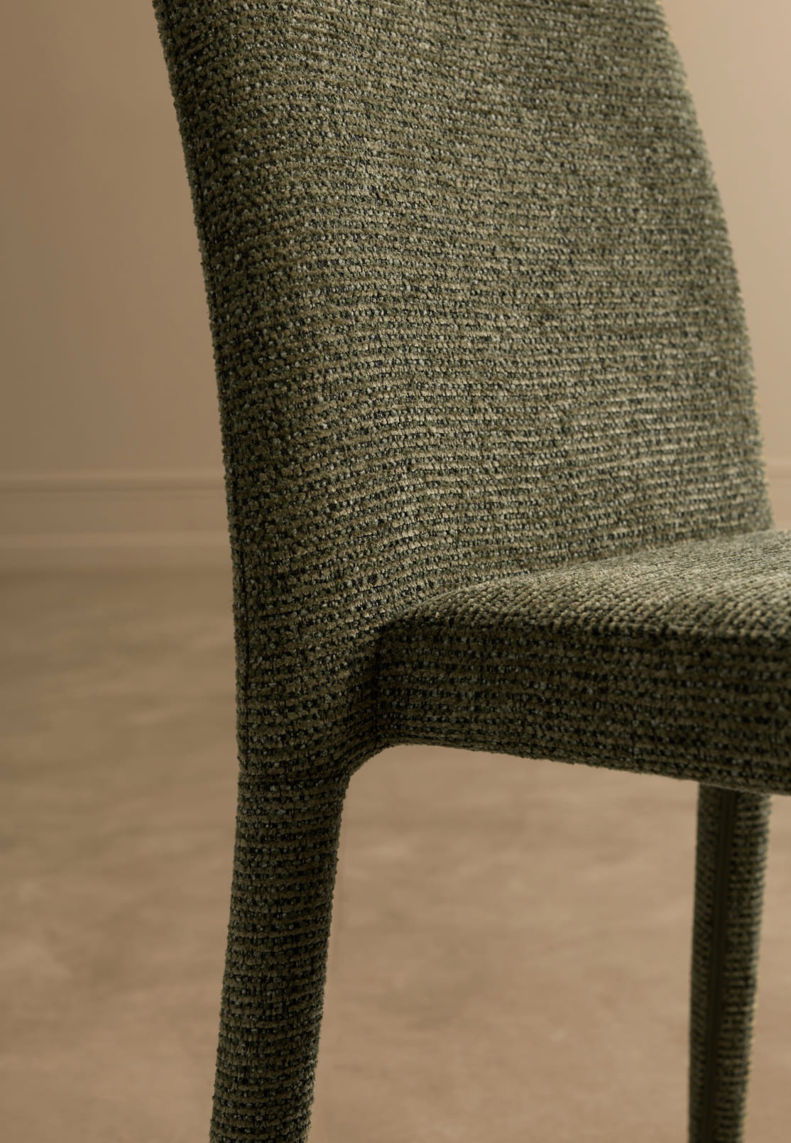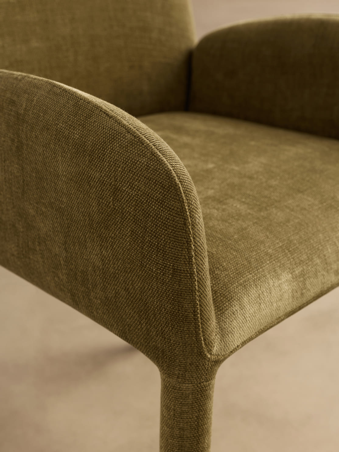 Haven is available in three textured upholstery options. COCO 112 features a fine, rhythmic pattern. FIELD 130 offers a soft, understated beige. The muted olive tone of HARMONY 351 introduces depth and can serve as a considered colour accent.