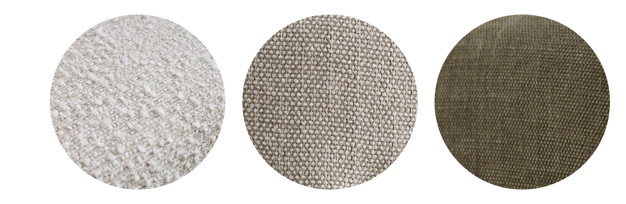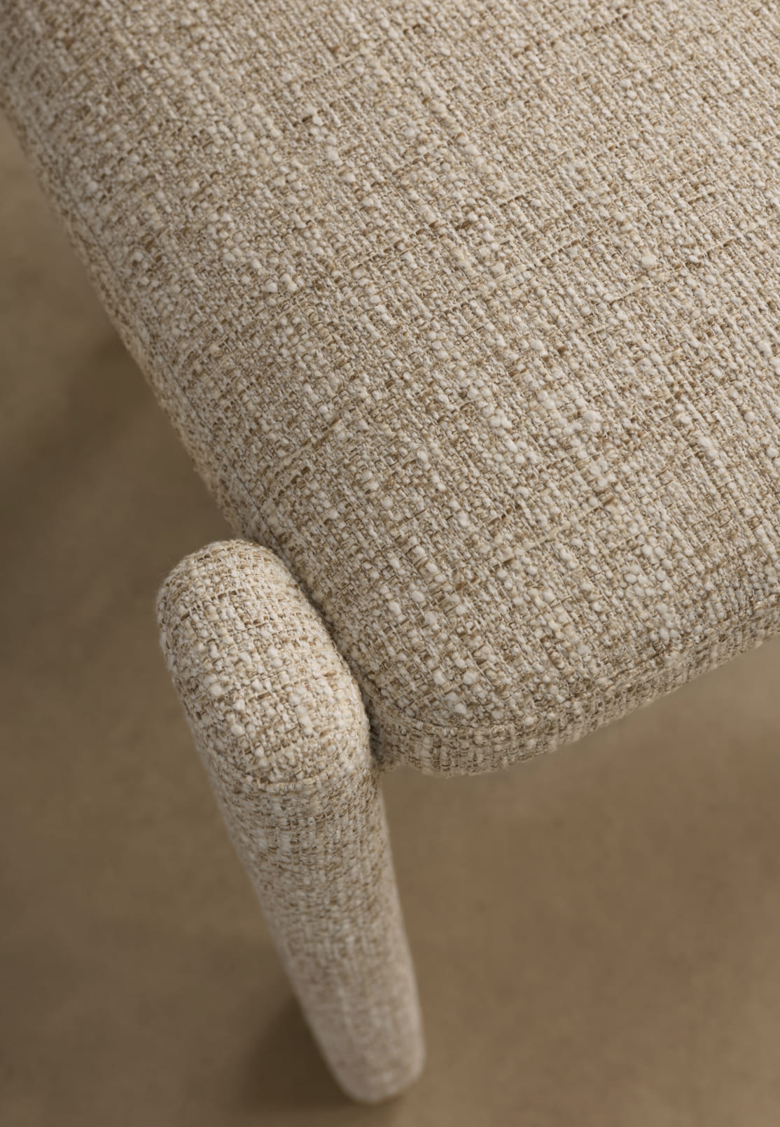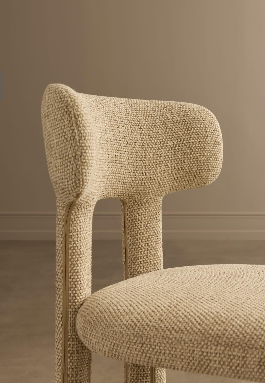 Haven is available in three textured upholstery options. COCO 112 features a fine, rhythmic pattern. FIELD 130 offers a soft, understated beige. The muted olive tone of HARMONY 351 introduces depth and can serve as a considered colour accent.