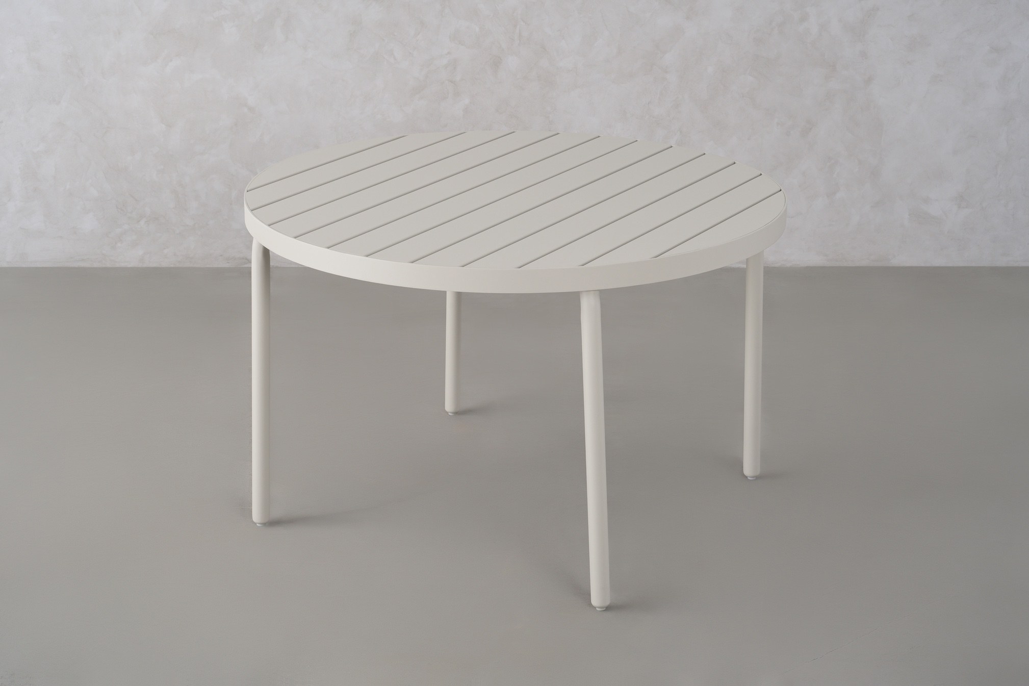 The Round Dining Table is the largest of the three new pieces, but still considerably more compact than the existing rectangular Dining Table. At 120 cm in diameter, it seats four comfortably and can accommodate six when the evening calls for it. The circular form is a practical choice for outdoor dining: there is no head of the table, no awkward corner seats, and the proportions remain balanced regardless of how many chairs surround it.