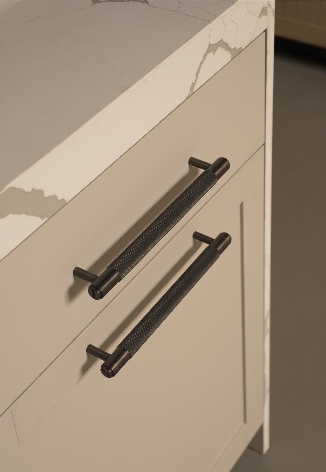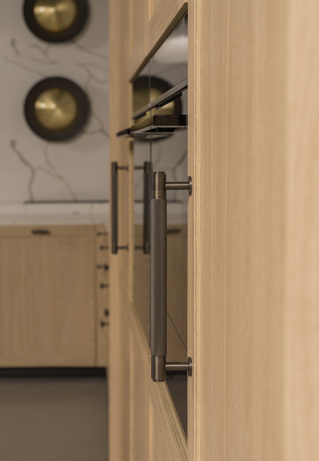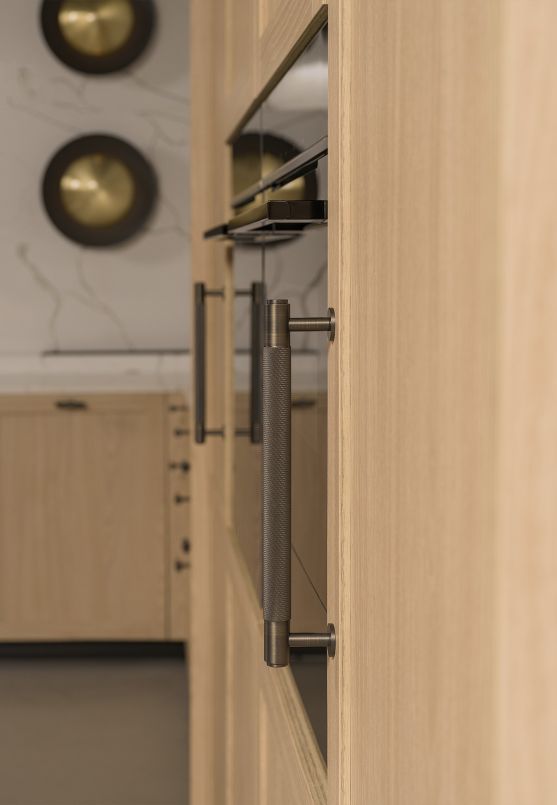 Details complete this personal layer. Dark handles can bring definition to lighter surfaces, adding a graphic note that remains restrained. The kitchen can be completed with Buster + Punch signature handles, also available in the Dantone Home assortment, introducing a recognisable tactile detail into the composed geometry.