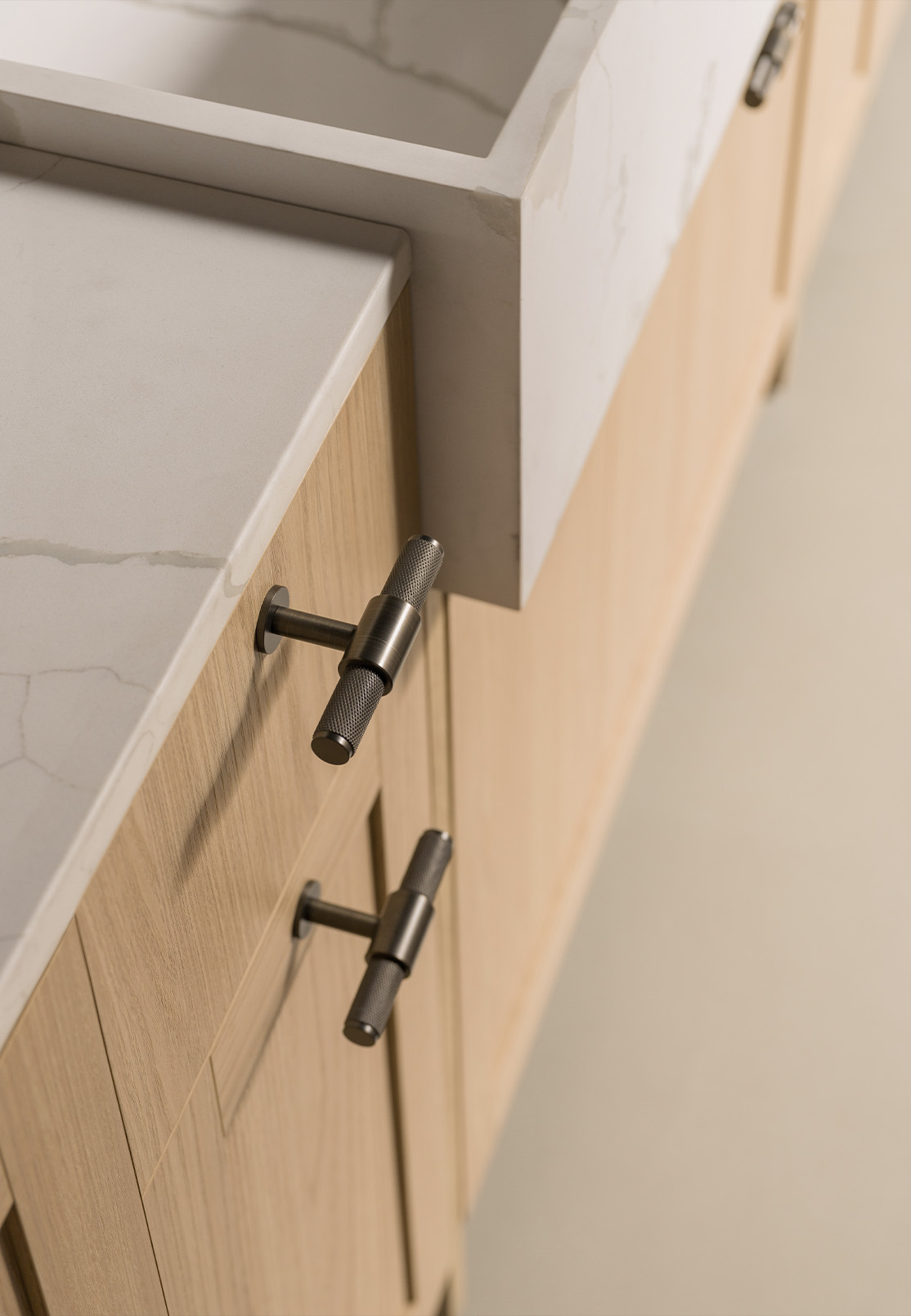 Time spent in the kitchen shapes its character more than any single detail. Each worktop is produced individually, with its depth defined by the project and the needs of the person using it. This makes it possible to move far beyond the standard 60 cm when required, creating a surface that supports everyday cooking, shared use and different ways of moving through the space.