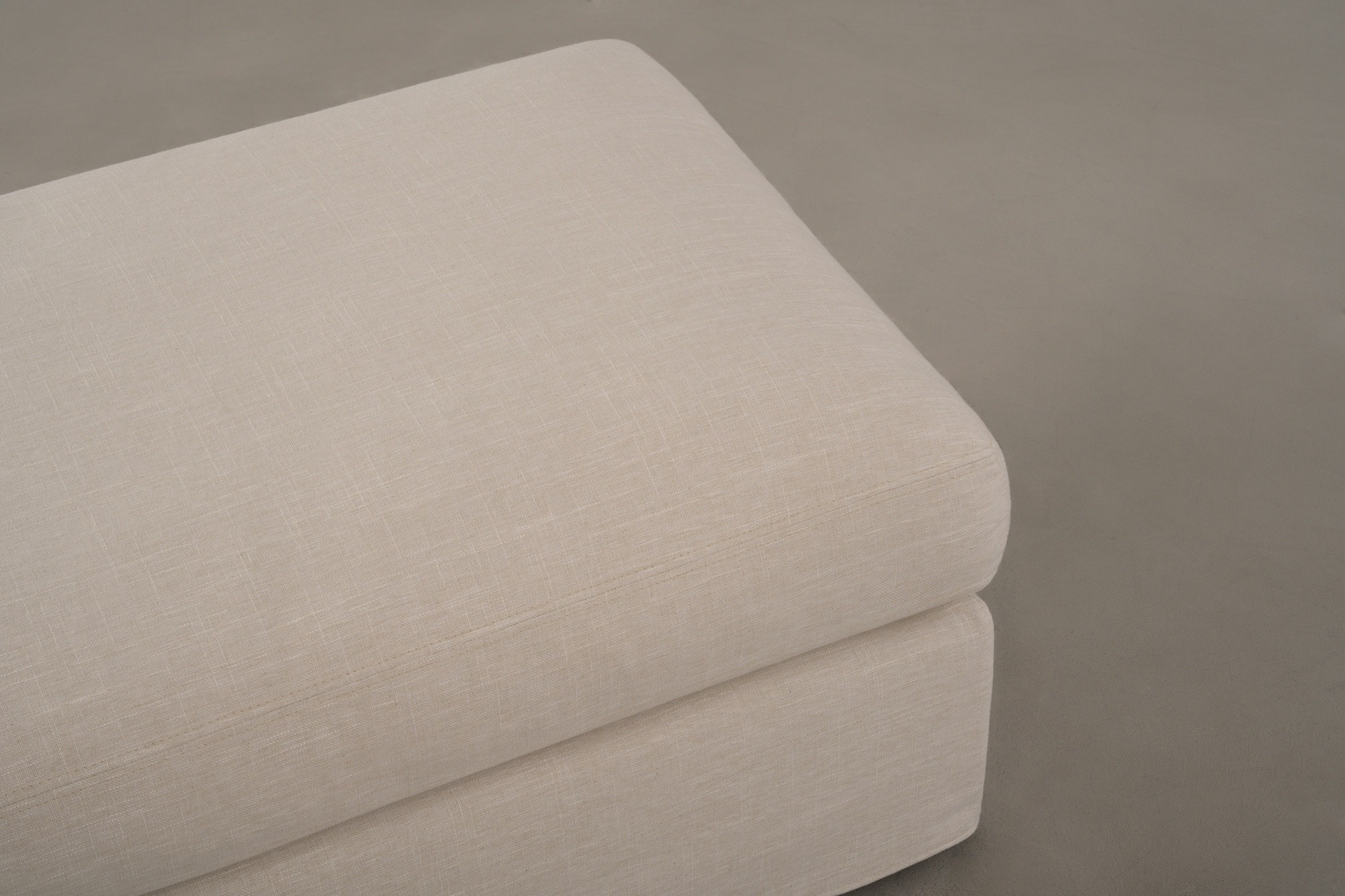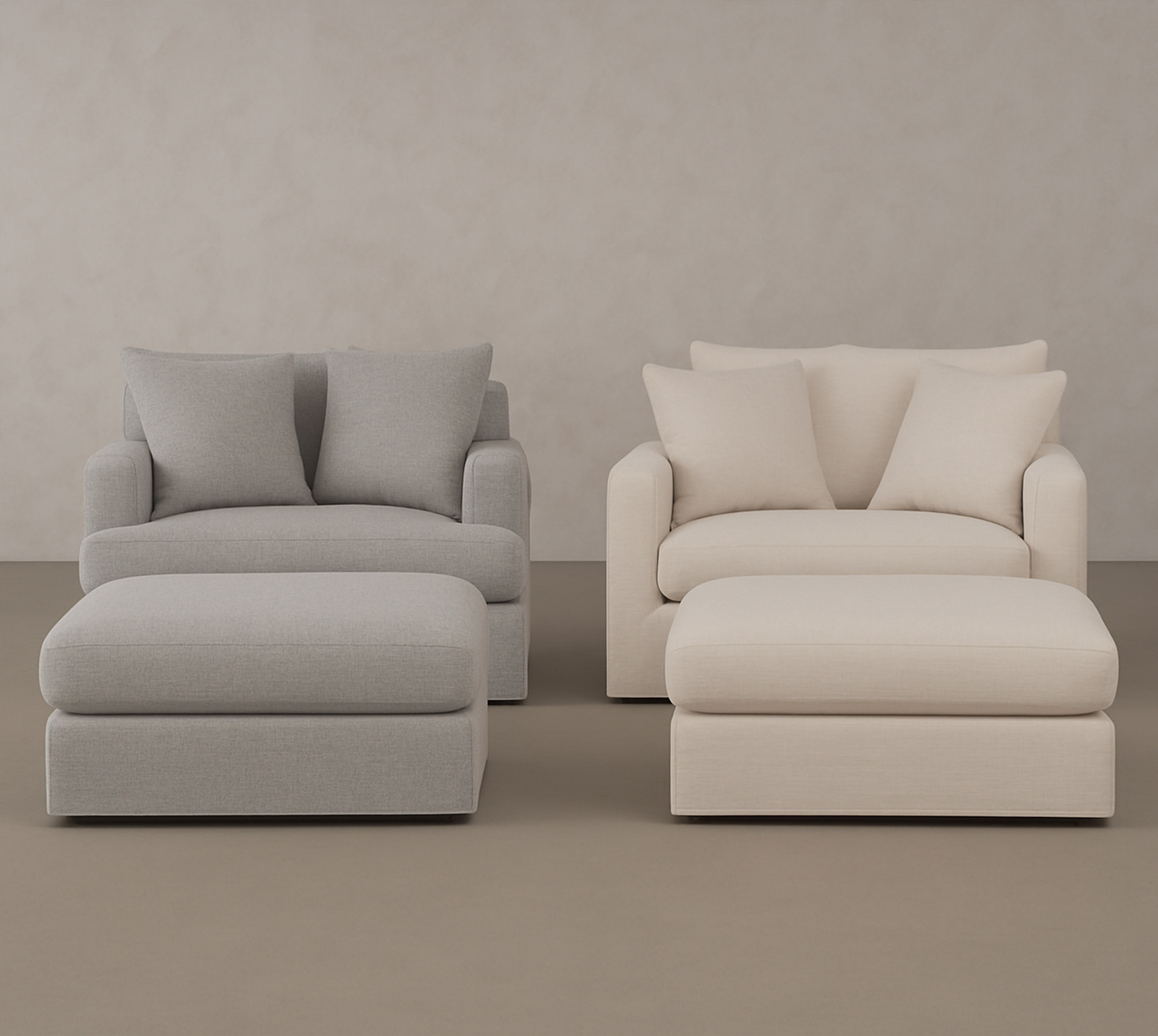 As a standalone piece, the Carmel pouf brings quiet practicality — a place to rest your feet, set down a tray, or extend a sofa’s layout. But alongside the armchair, it becomes something more: a seamless continuation of comfort. The pouf echoes the same calm geometry and upholstered volume, transforming the armchair into a place made for slowing down and stretching out.