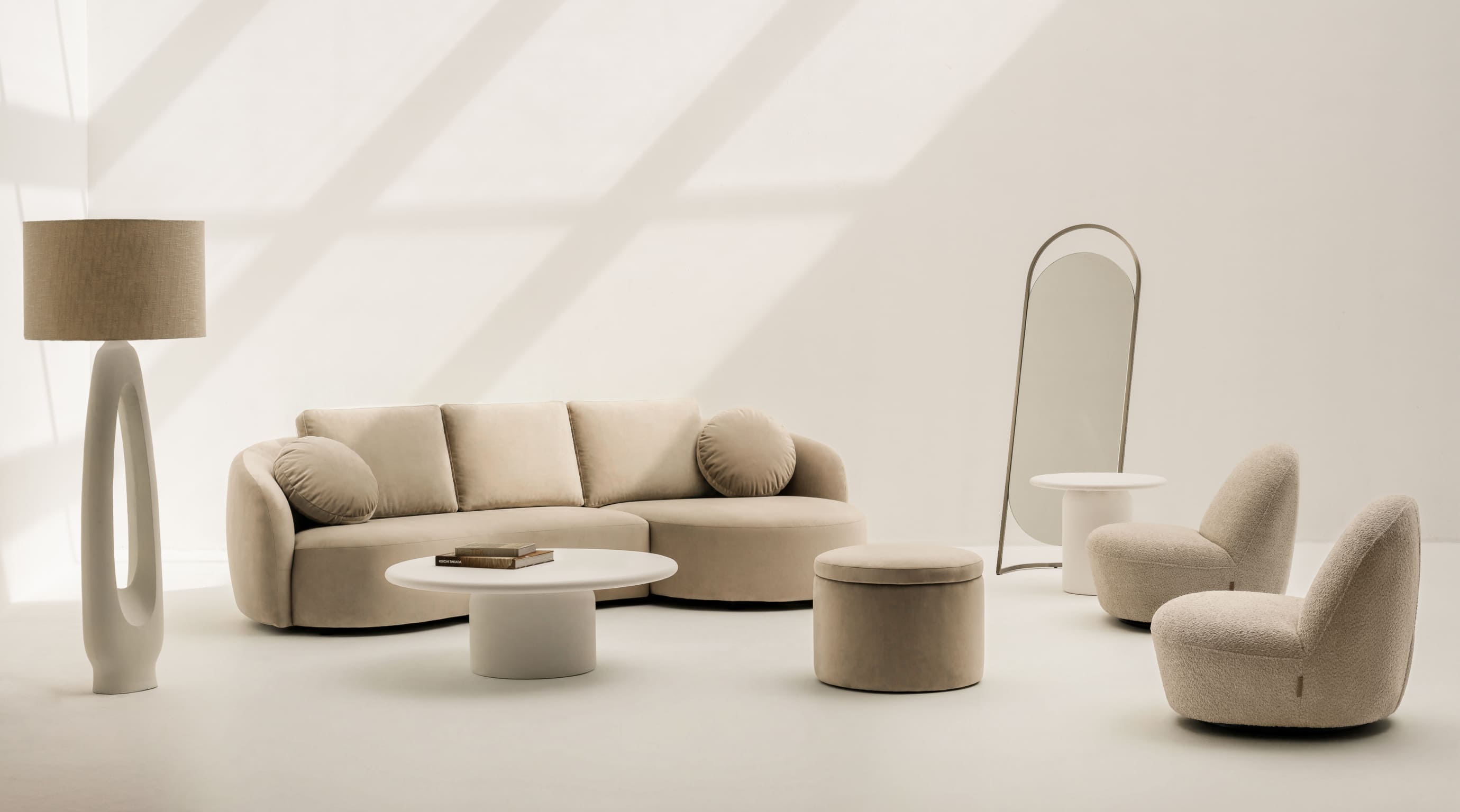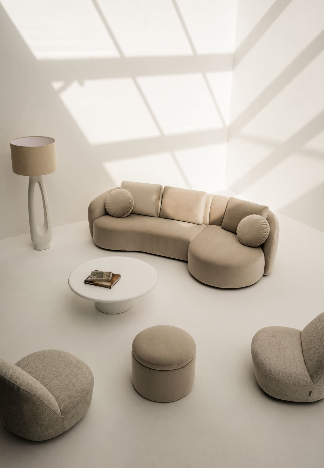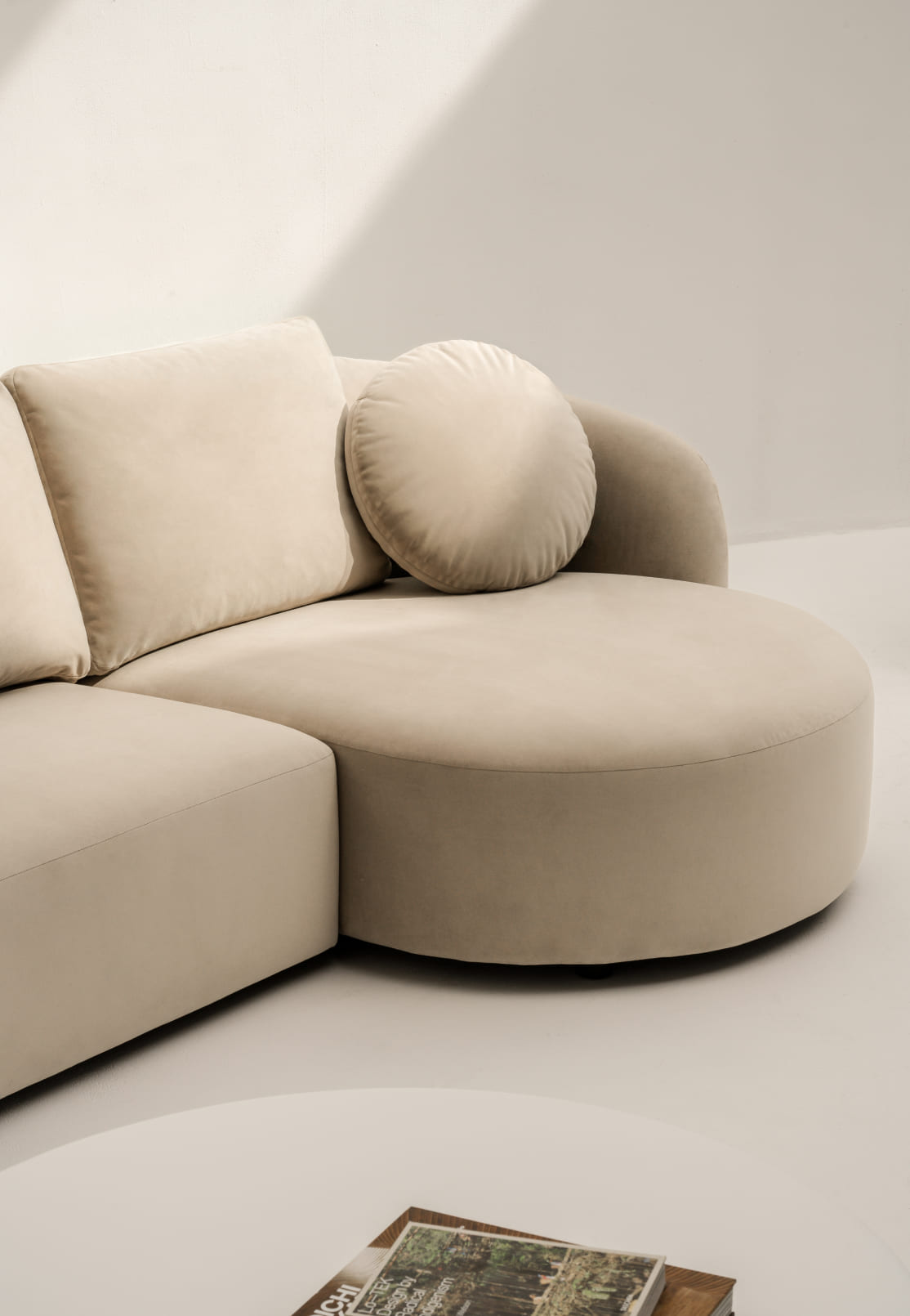 By extending into an L-shaped form, the sofa helps organise the interior, turning unused corners into a relaxed and clearly defined seating area. The configuration adapts easily to different scales of space: in smaller rooms, it makes efficient use of every metre while remaining generous in comfort; in open-plan interiors, it gently defines the relationship between living, kitchen and dining zones, allowing transitions to feel natural rather than imposed.