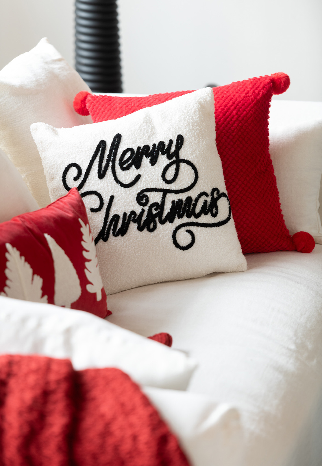 Soft textures are essential in winter, and our cushions and throws bring that inviting touch. Plush greens, embroidered trees, classic plaids, faux-sheepskin squares, deep red blankets — these are the pieces that instantly make a room feel warmer and more lived-in, whether layered on a sofa or arranged on an armchair.